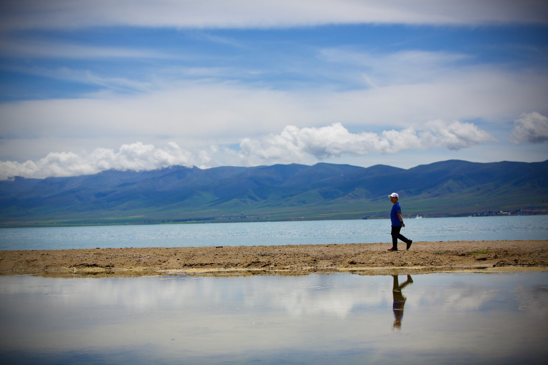 2022年正是新冠疫情管控最严格的那一段日子,在青海湖中央的沙滩上,我用70-200镜头记录了一张悠闲而安静的照片。